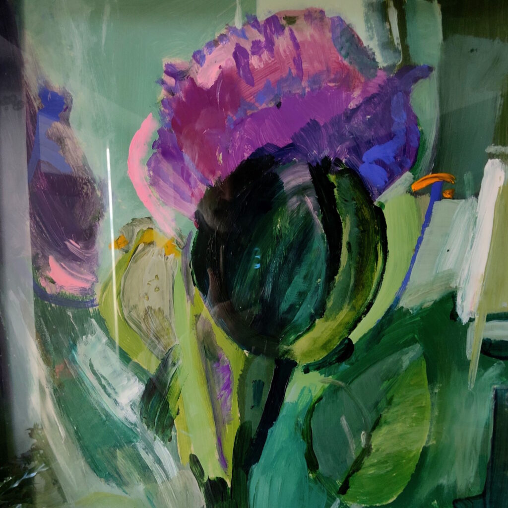 Choć drzewo istnieje wciąż w tej twórczej wyobraźni, na płótnach artystki pojawiają się też ptaki, kwiaty, „Żywioły”, „Refleksje”, kształty coraz bardziej niekreślone. Szerokie i energiczne pociągnięcia pędzla zdradzają warsztat, a gra zdecydowanych form wydaje się niejednokrotnie rozsadzać ramy płótna. To abstrakcja, która przyciągają wzrok. Kolor jest głównym środkiem ekspresji, ale ważną rolę odgrywa też światło, bo nawet w najbardziej „mrocznej” kompozycji pojawia się mała smuga albo świetlisty blik – niczym promień nadziei – znak, że życie toczy się dalej, mimo wszystko.